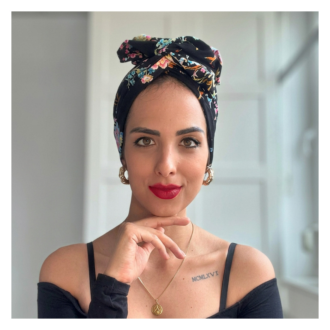 Der honiggelbe Turban ist das perfekte Accessoire für alle, die Vintage-Mode lieben und mit einem originellen und praktischen Look auffallen möchten. Inspiriert von Swing- und Pin-up-Styles ist dieser Turban einfach anzuziehen, angenehm zu tragen und maschinenwaschbar.