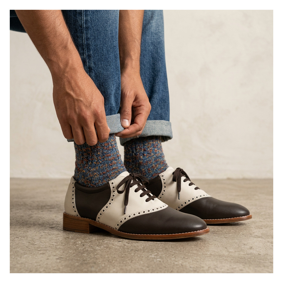 Saddle shoes dark chocolate and cream - For men