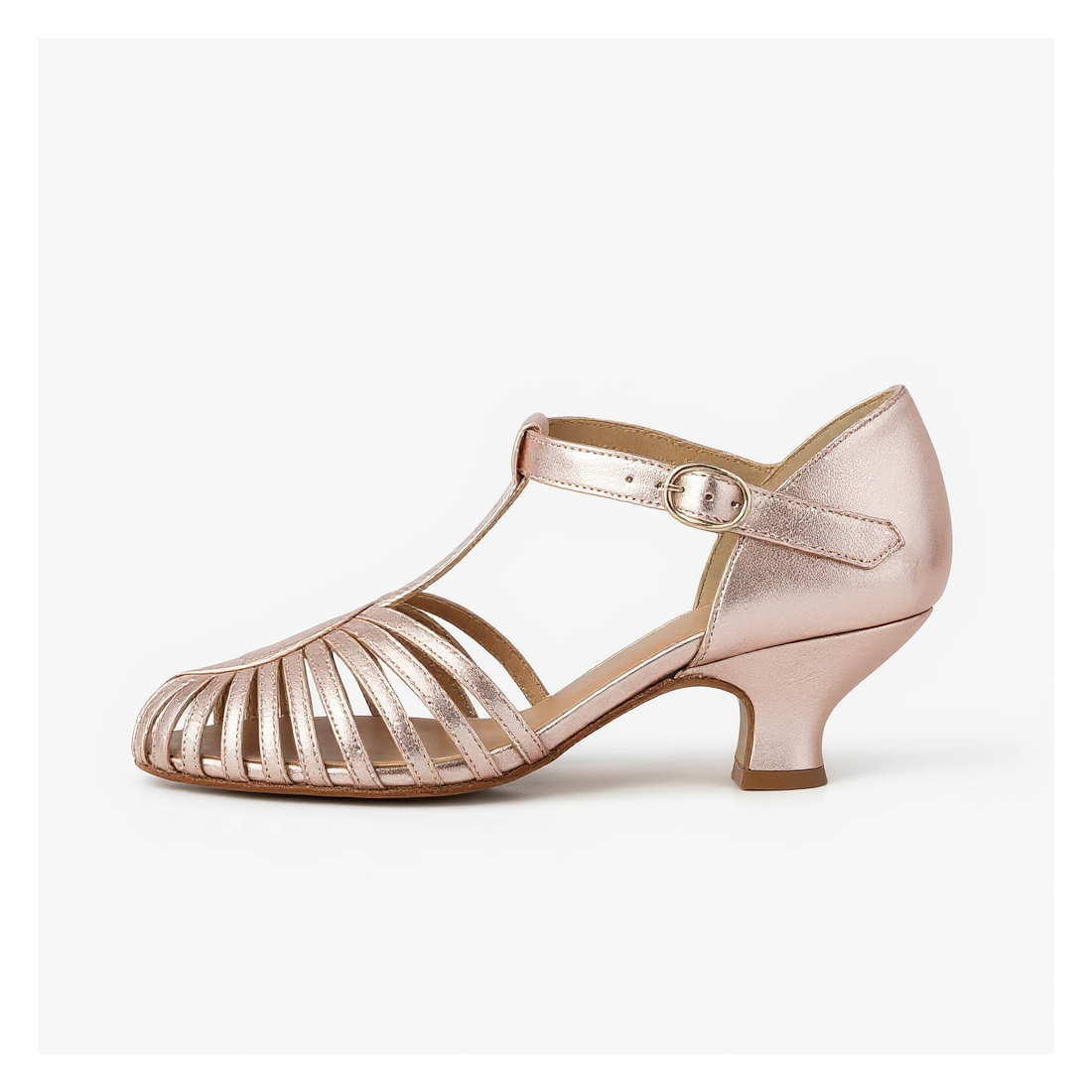 El modelo Marlene Rosa Oro inspirado en los años dorados del swing "los locos años 20", combinan la elegancia clásica del swing con colores vibrantes y modernos, está confeccionado con 100% piel de alta calidad, estos zapatos ofrecen un estilo distinguido y durabilidad para todas tus sesiones de baile, perfectos para bailarinas de swing con personalidad. Su suela de cuero permite un deslizamiento suave y controlado, ideal para realizar movimientos fluidos en la pista de baile. Además su horma perfectamente diseñada y la plantilla interior acolchada garantizan un confort excepcional, permitiéndote bailar cómodamente hasta que se apaguen las luces.