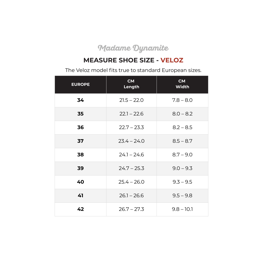 Inspirée du danseur emblématique Jean Véloz, cette chaussure élégante reflète l'élégance et l'énergie de l'âge d'or du swing. Avec un talon haut de 7 cm, Veloz combine parfaitement un design sophistiqué avec le confort qui caractérise Madame Dynamite.